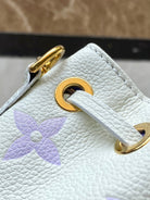 NANO NOÉ 16 IN WHITE PURPLE MONOGRAM EMBOSSED CALFSKIN