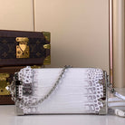 SLIM TRUNK 23 IN WHITE CROCODILE PATTERN CALFSKIN SILVER HARDWARE