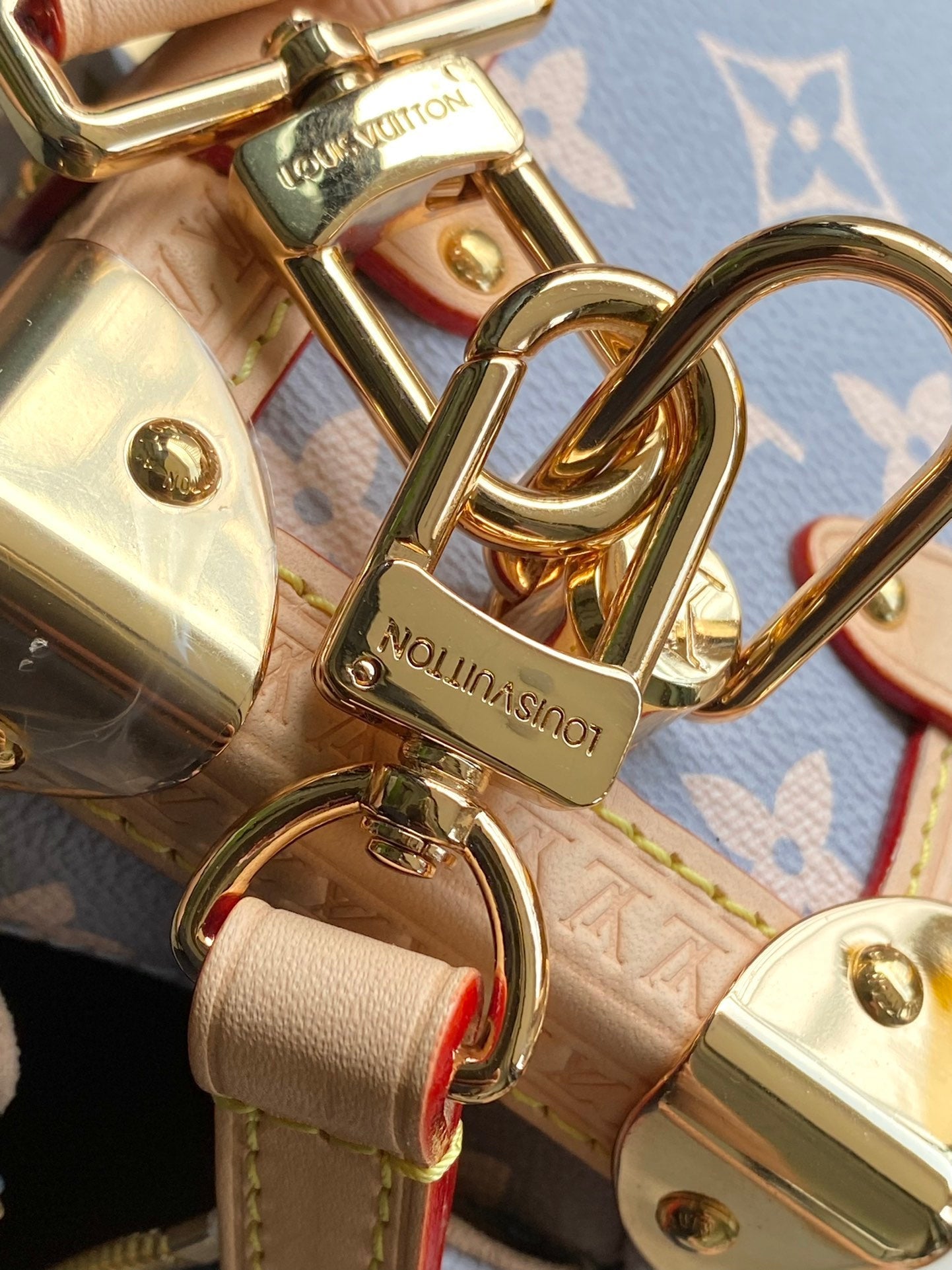 SPEEDY BANDOULIÈRE 20 IN SKY YELLOW MONOGRAM CALFSKIN GOLD BUCKLE