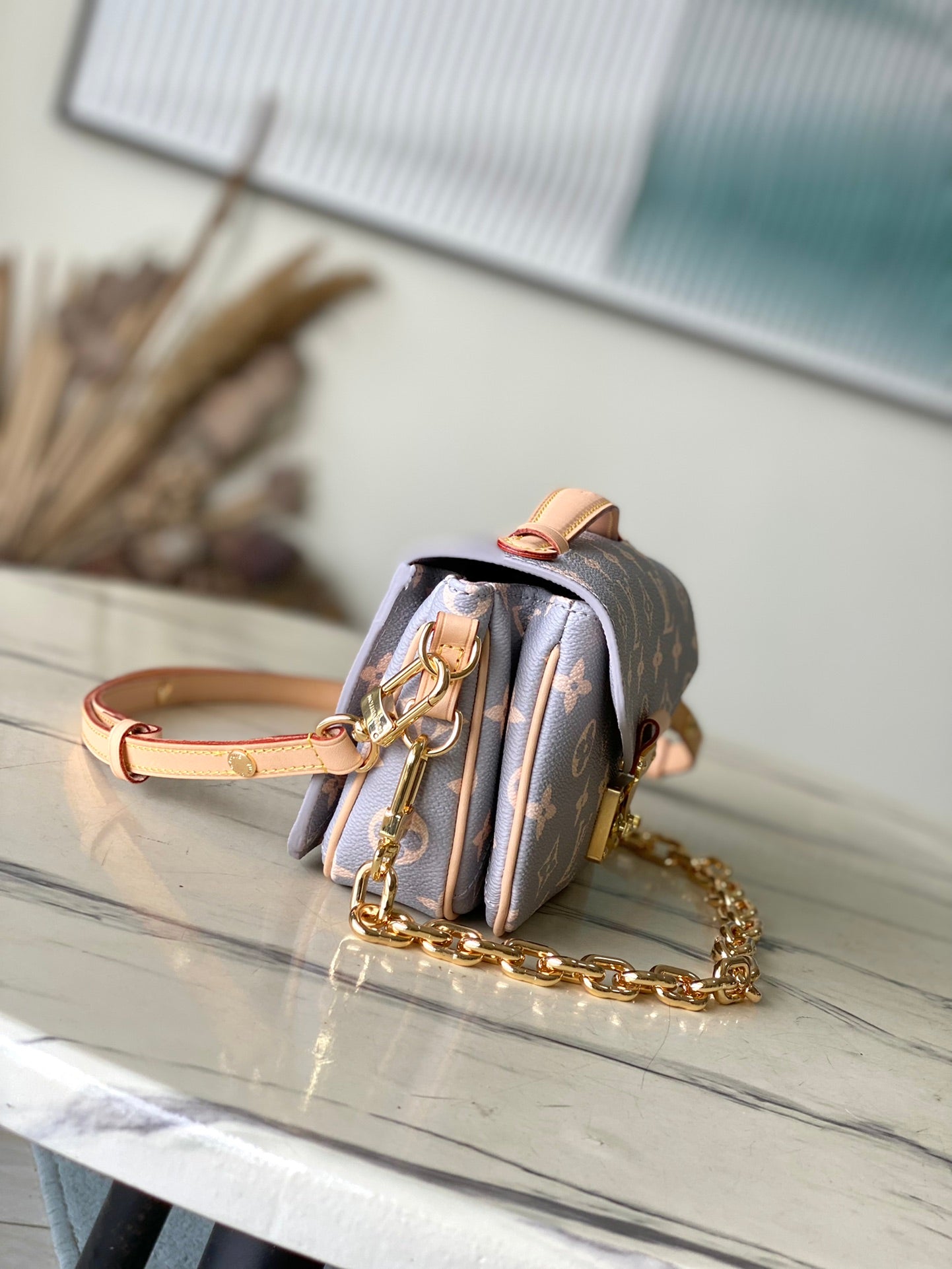 POCHETTE MÉTIS 25 IN LAGOON BLUE MONOGRAM TILES CANVAS GOLD HARDWARE