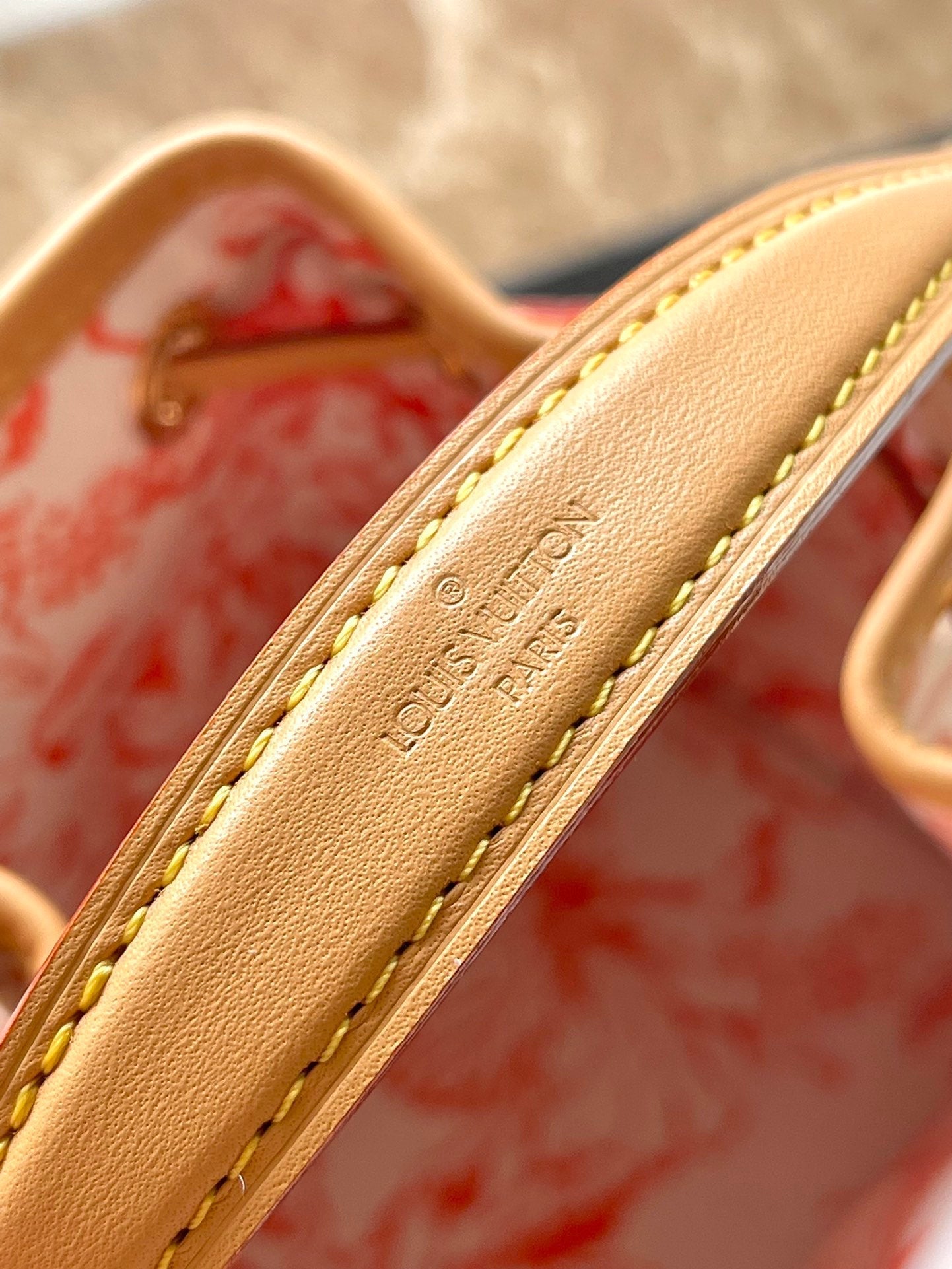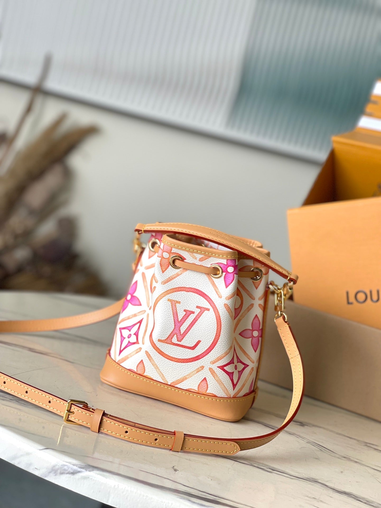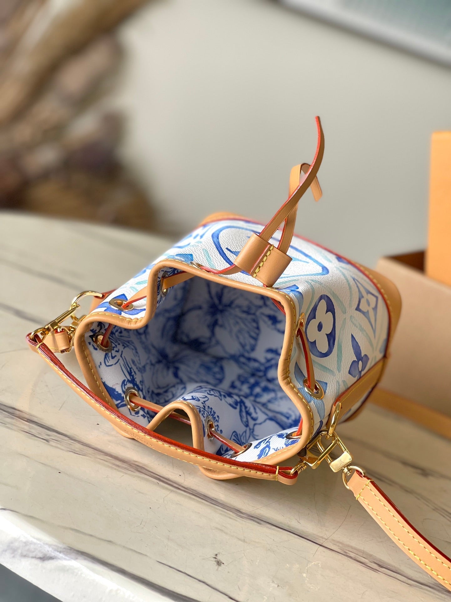 NANO NOÉ 16 IN WHITE PURPLE MONOGRAM EMBOSSED CALFSKIN