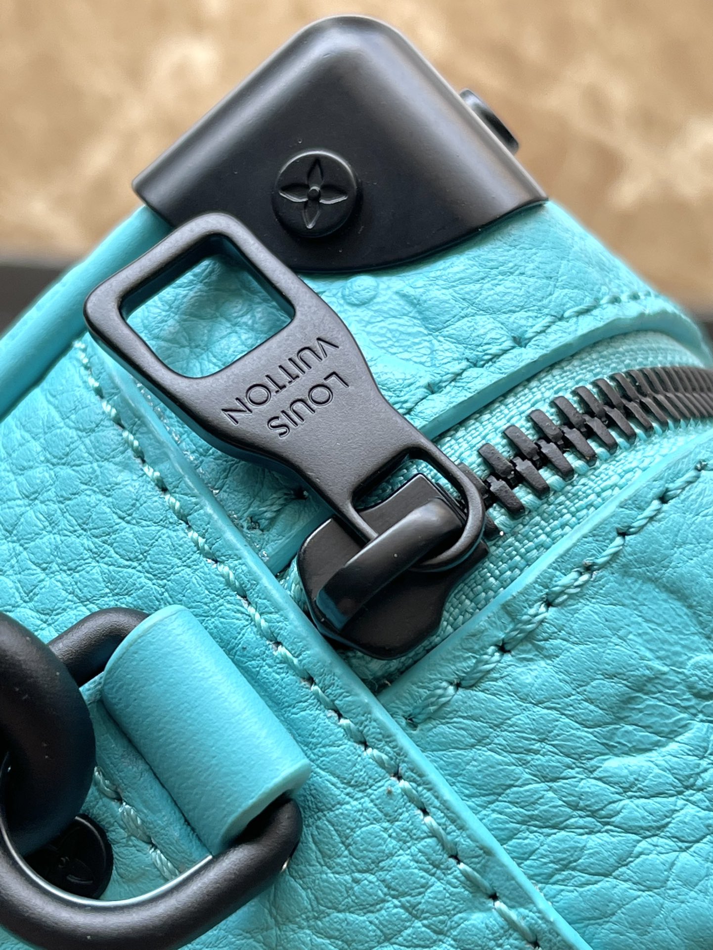 KEEPALL BANDOULIÈRE 25 IN TURQUOISE BLUE MONOGRAM EMBOSSED CALFSKIN