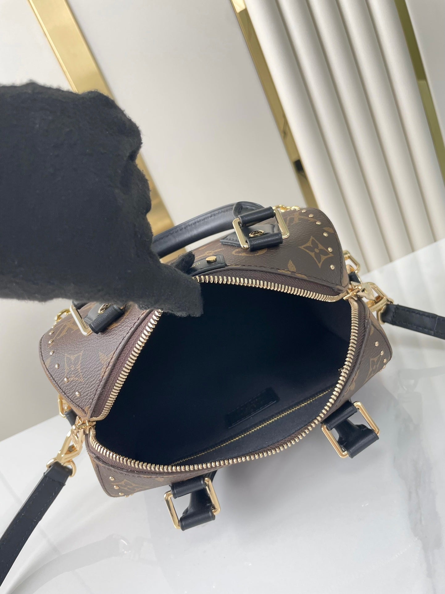 SPEEDY TRUNK 20 IN BROWN MONOGRAM CANVAS AND BLACK CALFSKIN TRIM GOLD BUCKLE