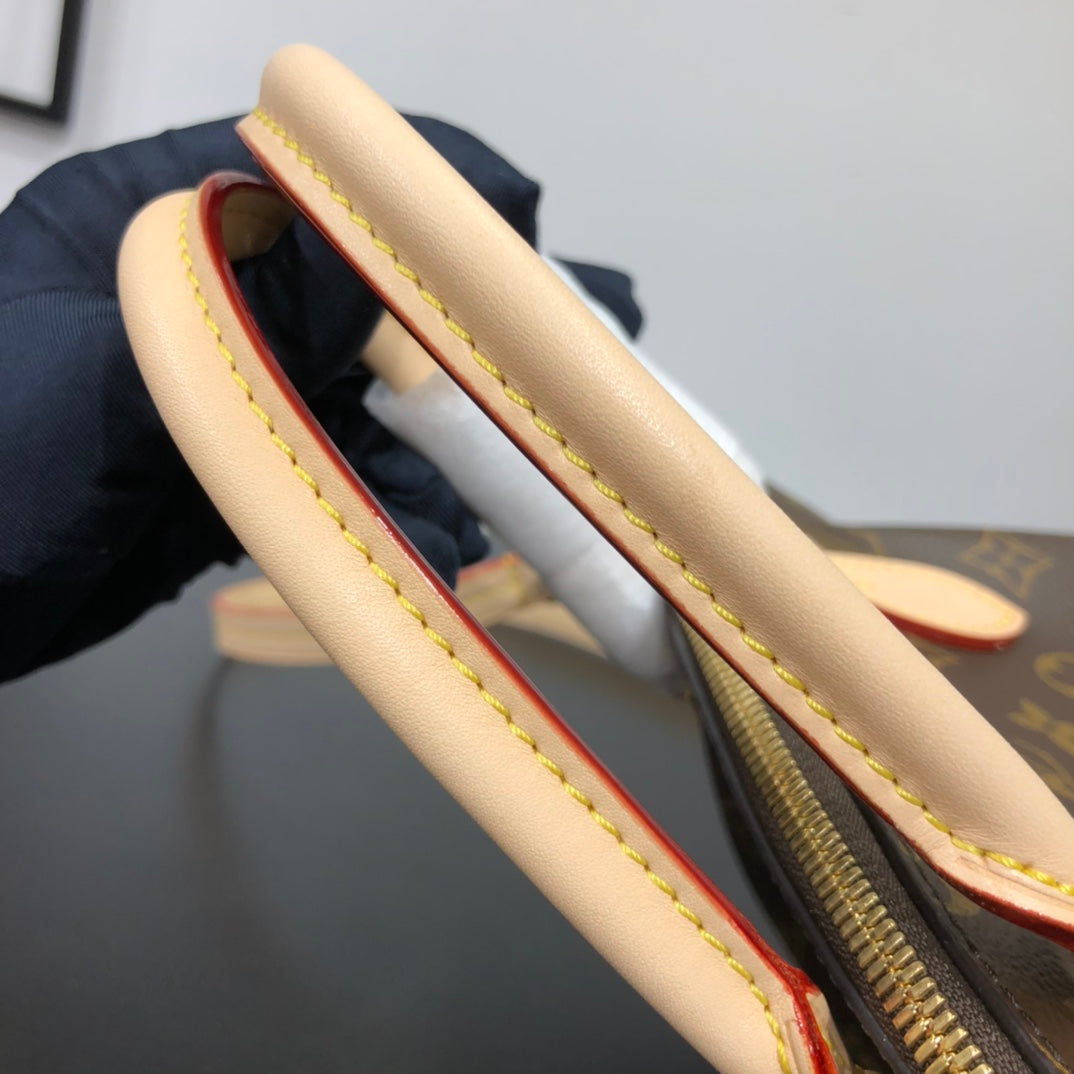 STEAMER 20 IN BROWN MONOGRAM DUST CANVAS AND CALFSKIN TRIM GOLD HARDWARE