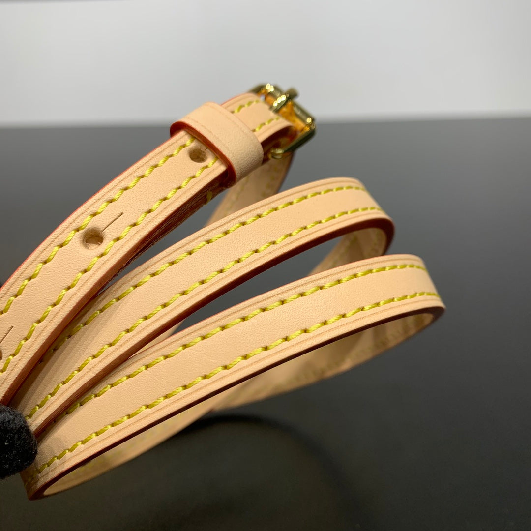ALMA BB 23 IN BROWN MONOGRAM CANVAS AND BEIGE CALFSKIN TRIM GOLD BUCKLE