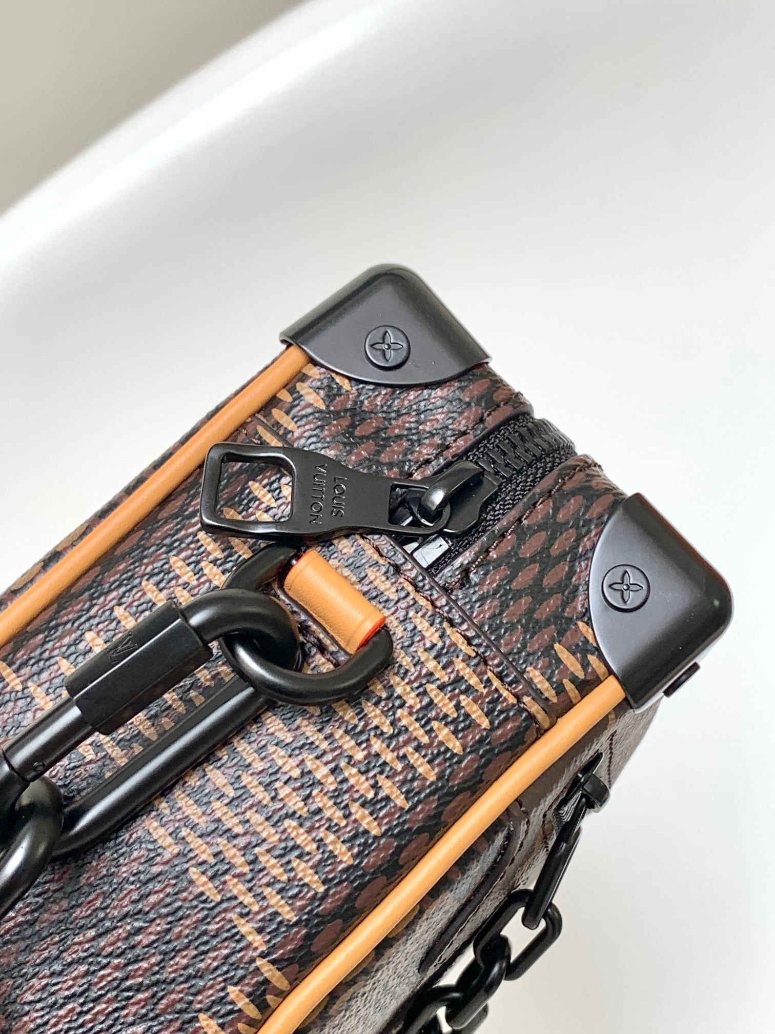 MINI SOFT TRUNK 18 IN BROWN DAMIER EBENE COATED CANVAS BLACK CHAIN