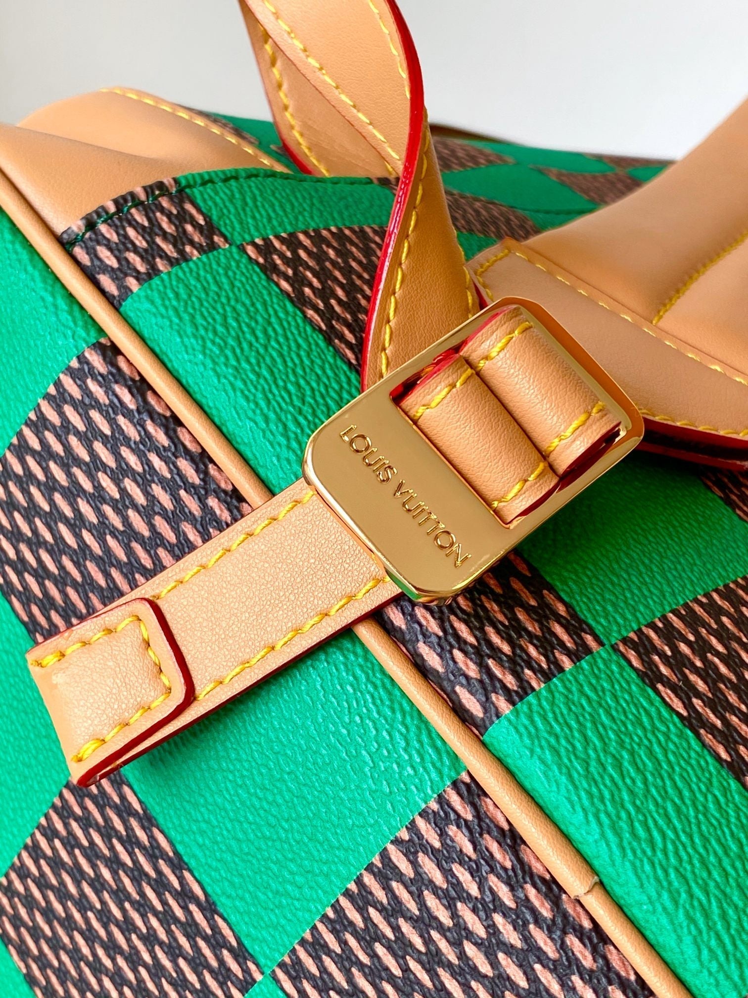 KEEPALL BANDOULIÈRE 45 IN BLUE GREEN DAMIER HERITAGE COATED CANVAS