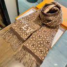 LV 25s Scarf 200cm Brown Beige Woolen 973138