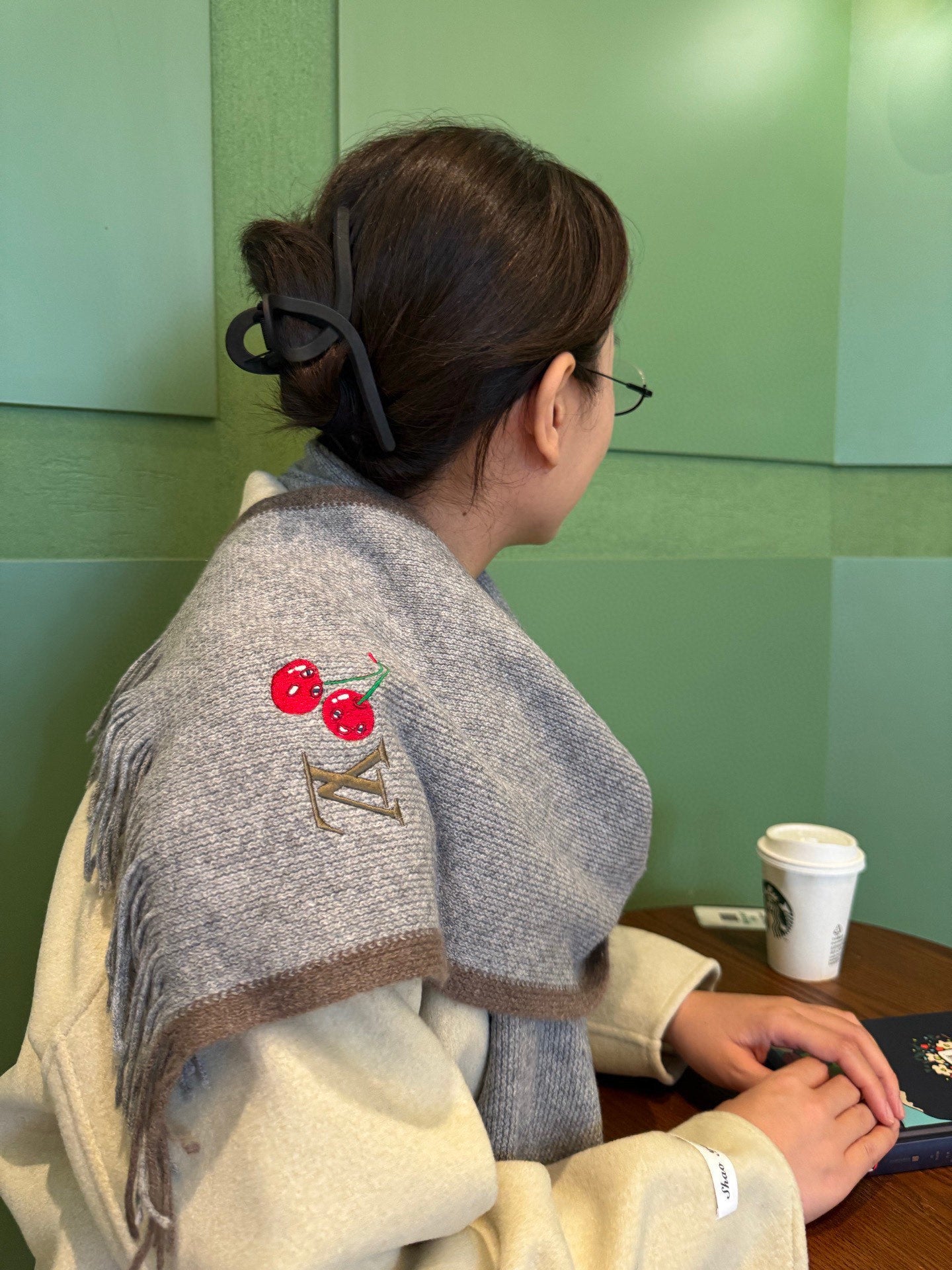 LV 25ss Scarf 180CM Gray Knitted Cashmere 292792
