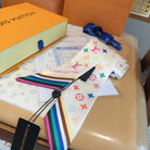 LV Twilly Scarf 120cm White Colorful Silk 965662