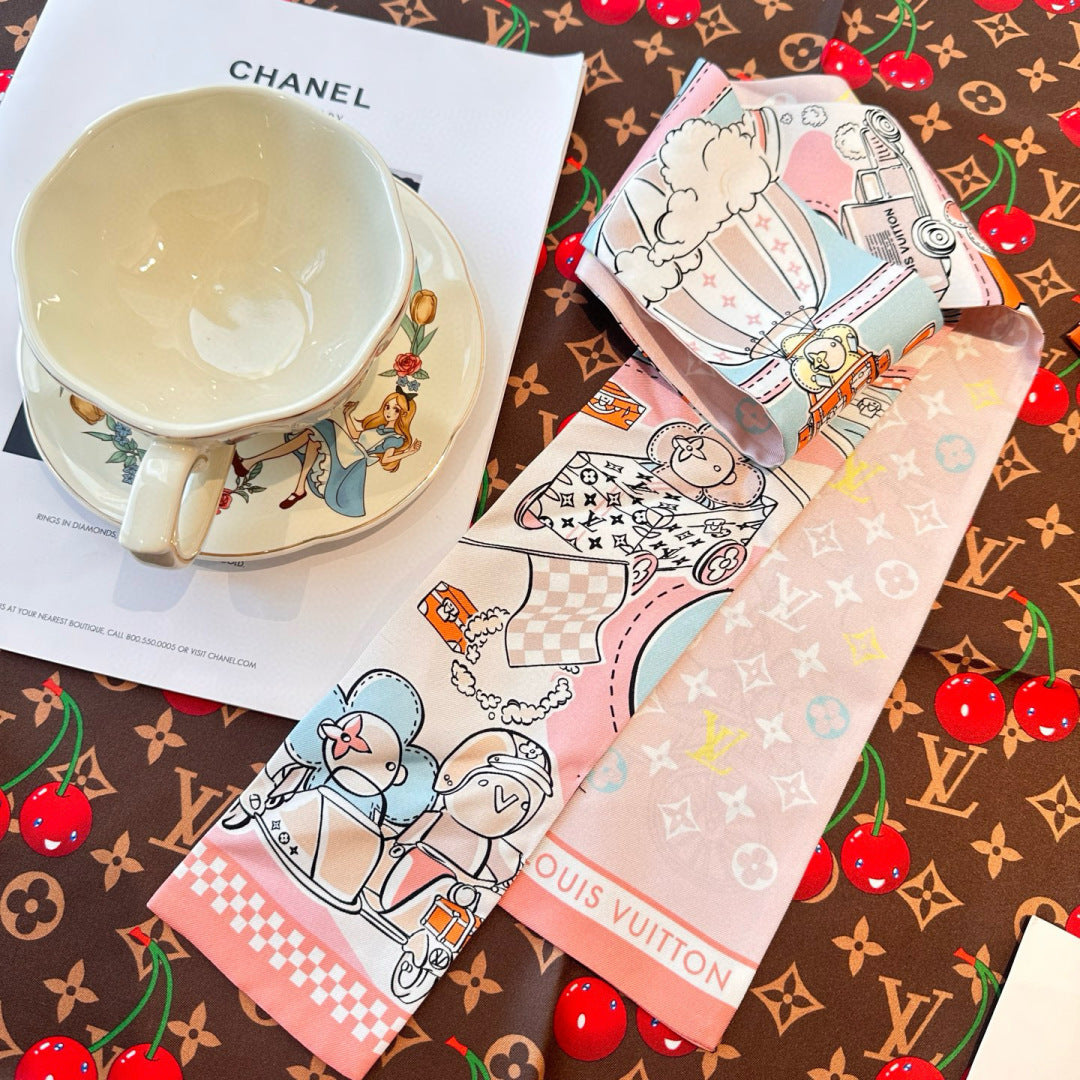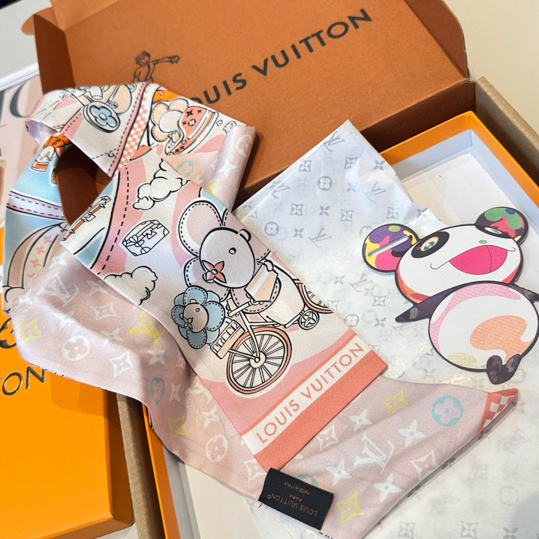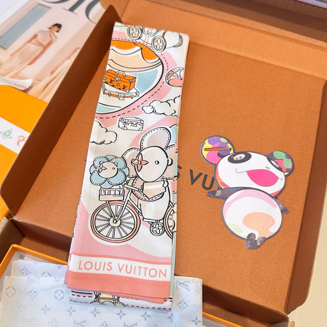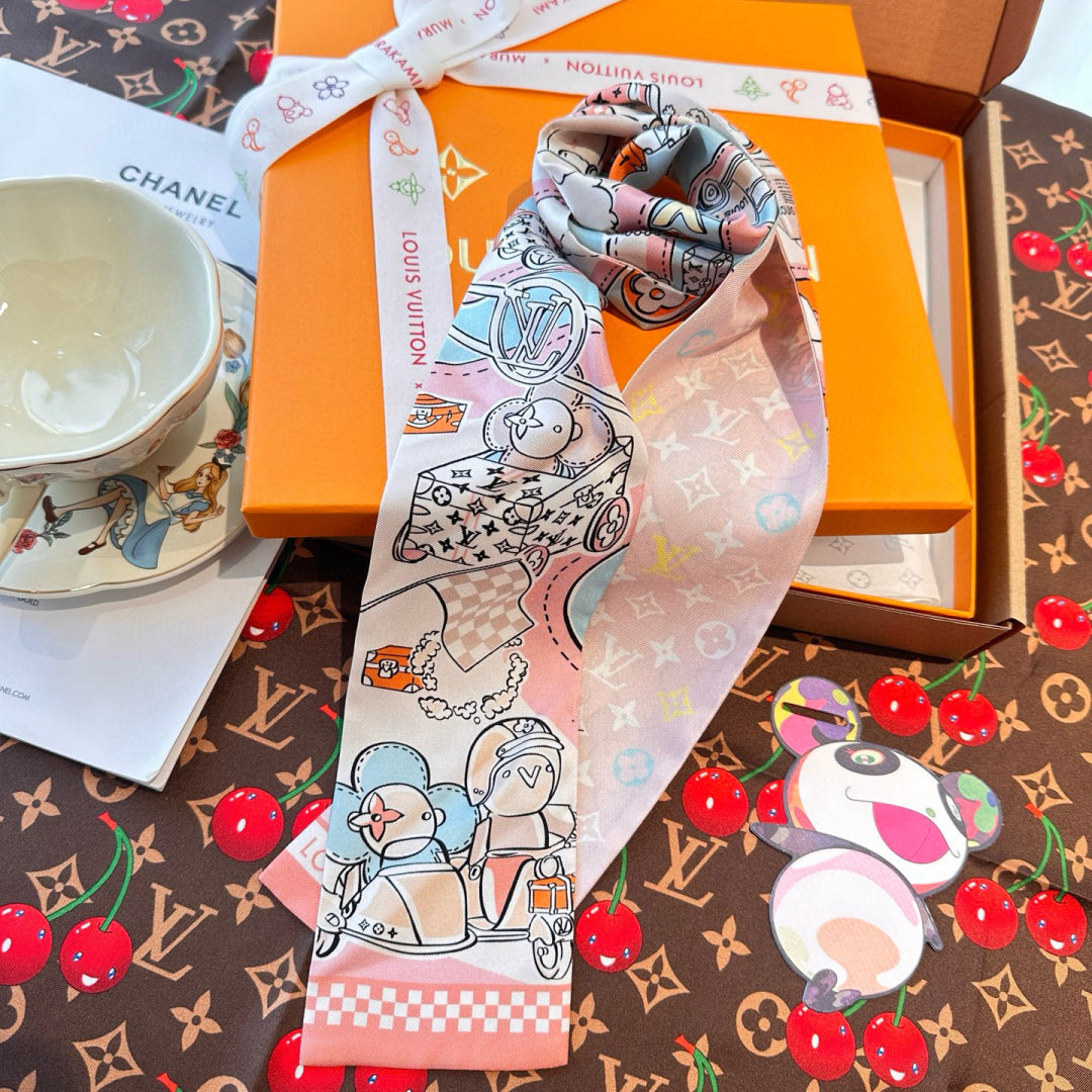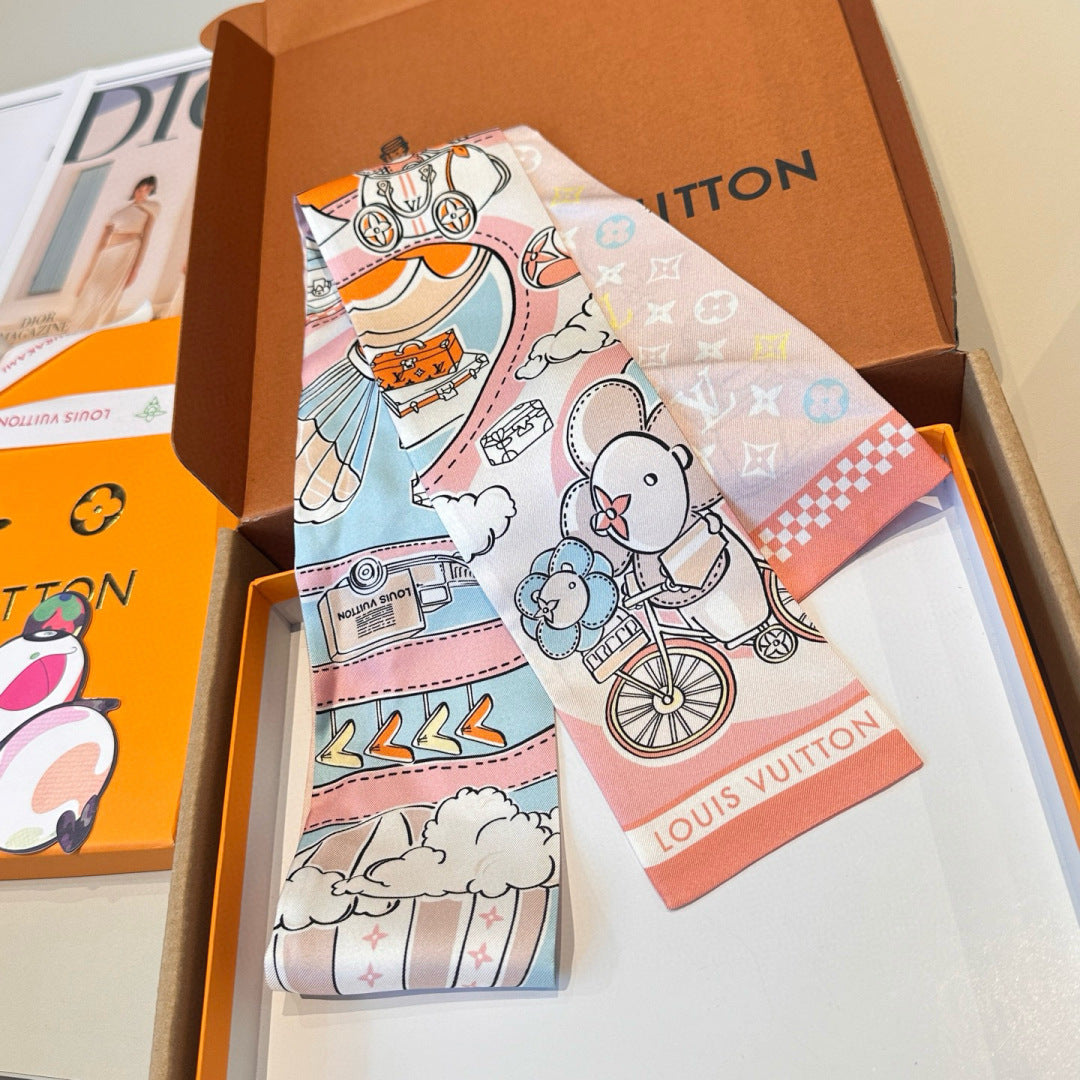 LV Twilly Scarf 120cm White Colorful Silk 965662