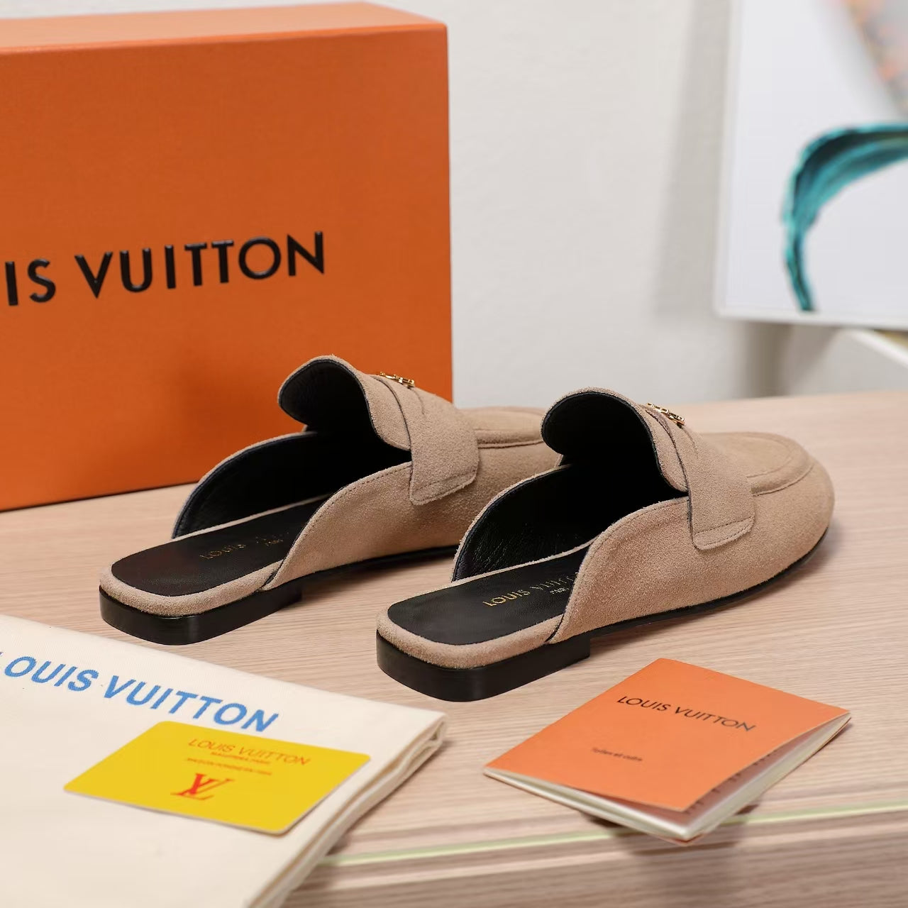 LV 25C Flat Mule Caramel Brown Monogram Cowhide 218315