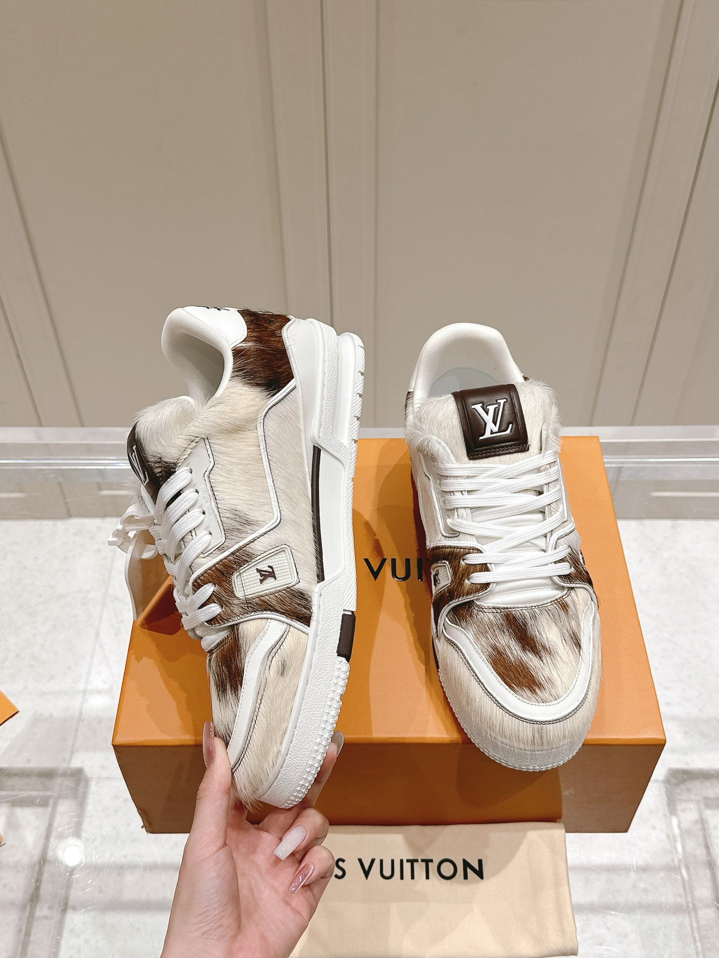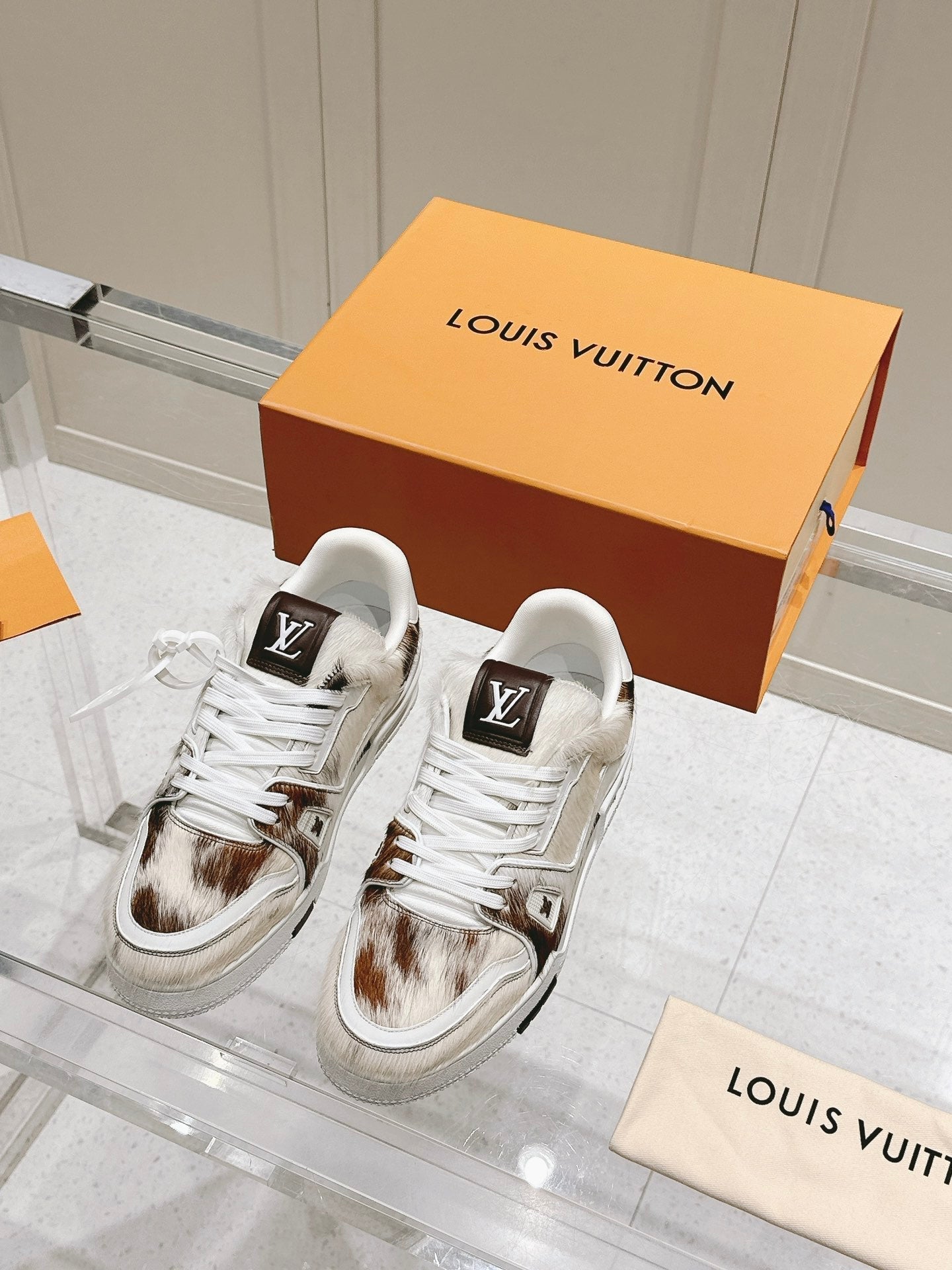 LV Time Out Sneakers White Mix Brown Monogram Cowhide