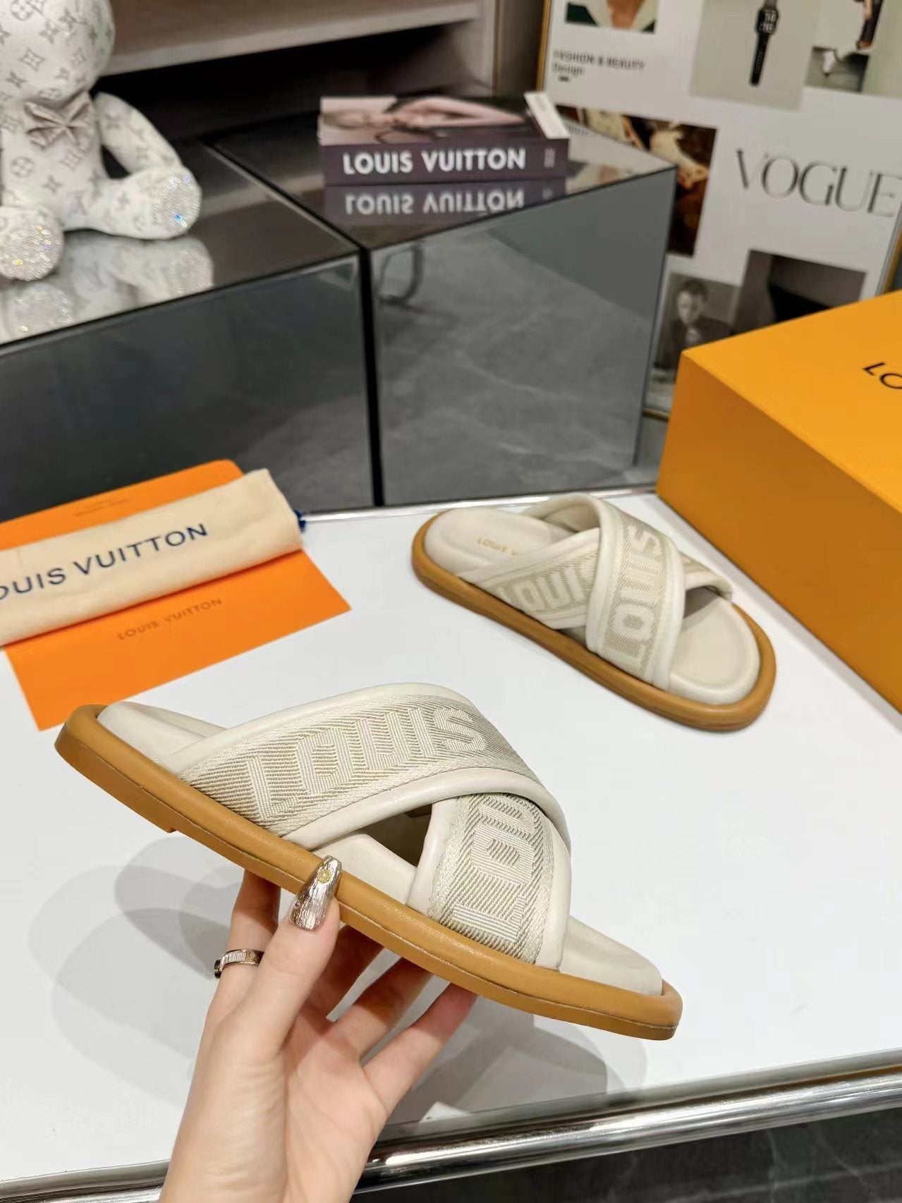 LV Paseo Flat Comfort Mule Beige Brown Fleece