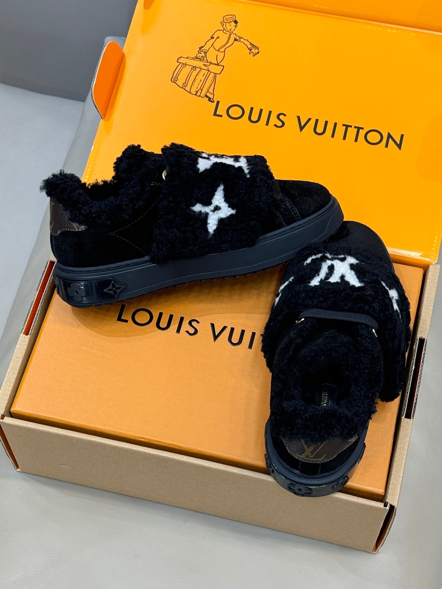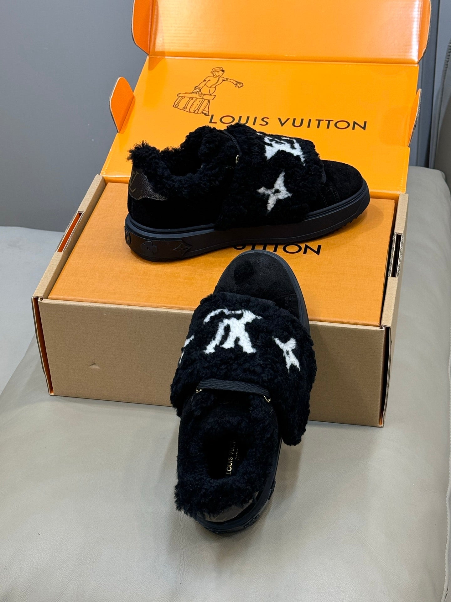 LV 25 Velcro Furry Sneakers Black Suede Wool 576952