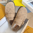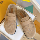 LV 25 Birkenstock Platform Slippers Beige Suede Wool 576216