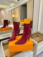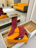 LV 25 Runway Ankle Boots 90 Wine Red Suede 573867
