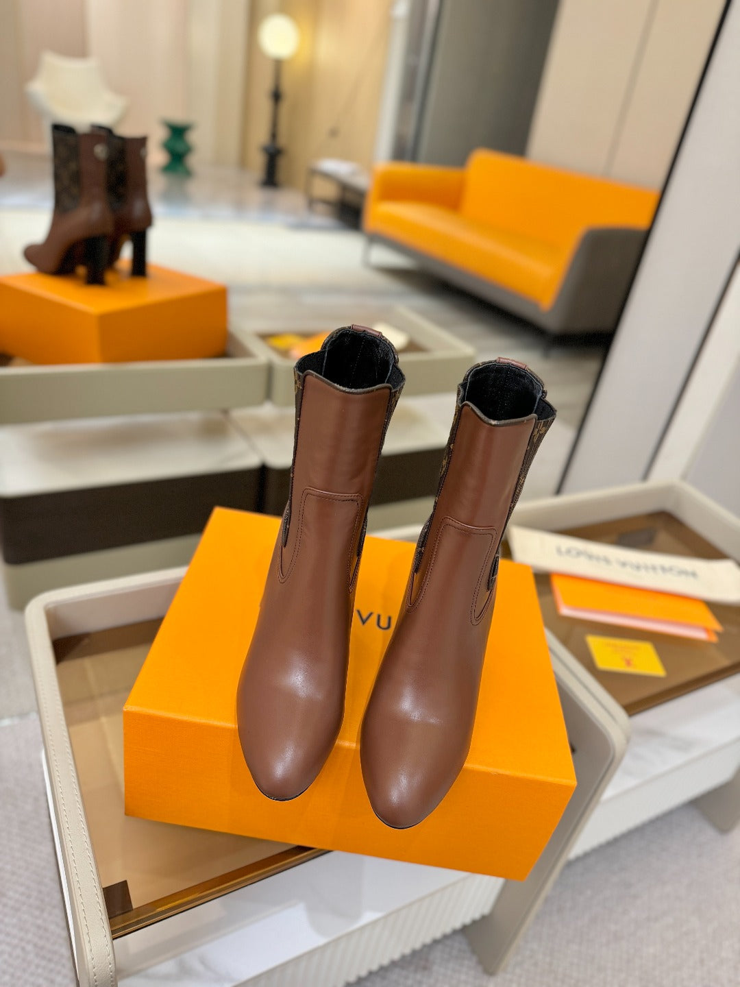 LV 25 Runway Ankle Boots 95 Brown Monogram Brown Calfskin 573859