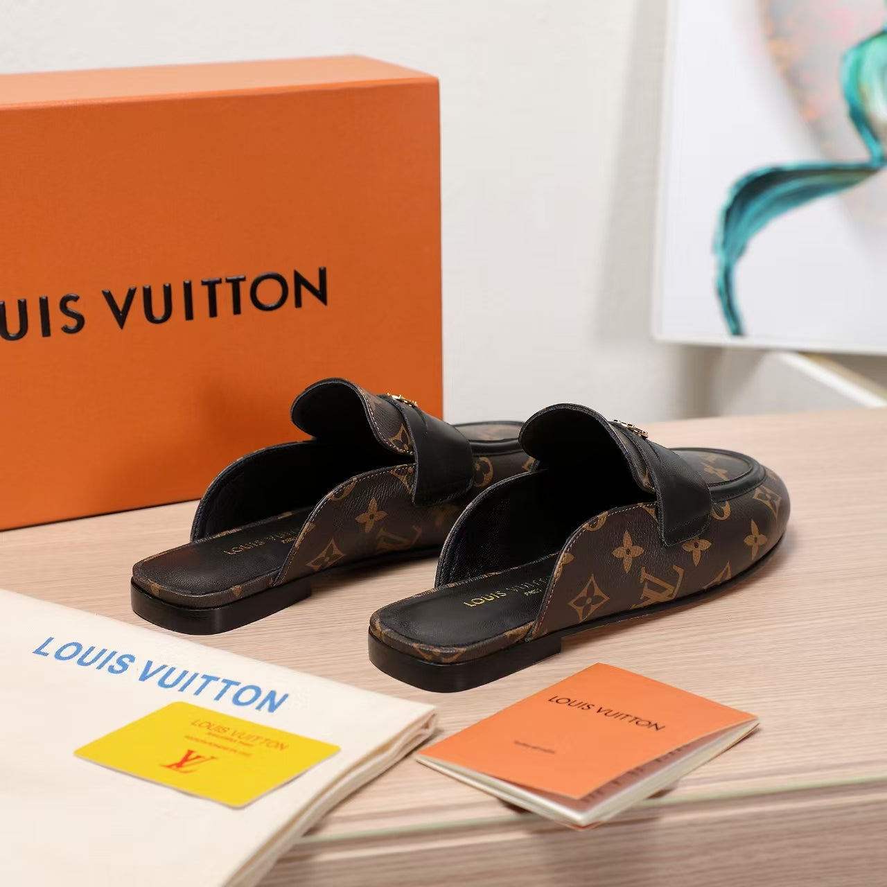 LV 25C Flat Mule Caramel Brown Monogram Cowhide 218315