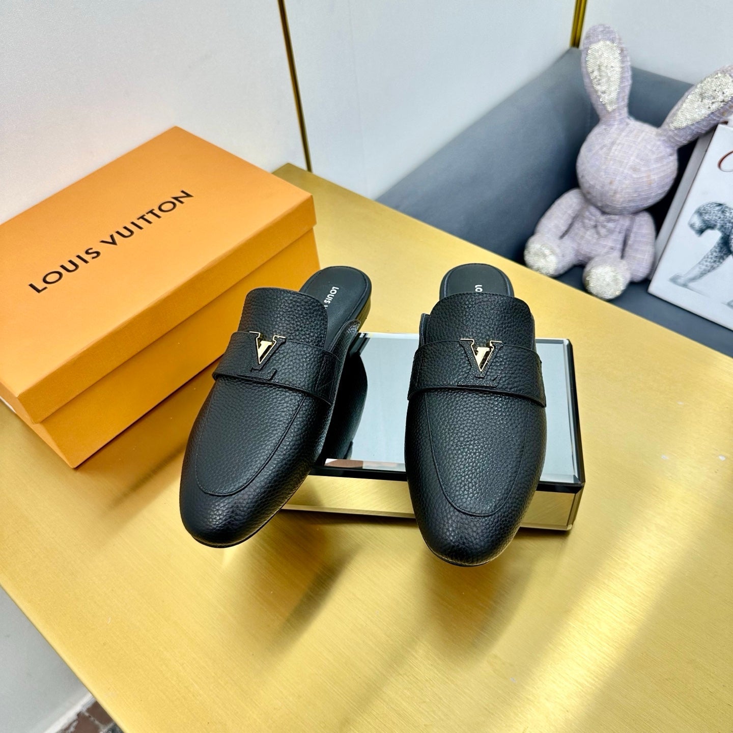 LV 25C LV Capri Open Back Loafer Black Wrinkled Cowhide 219926