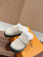 LV Cosy Flat Comfort Clog Beige Fur Lining Suede