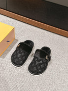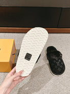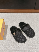 LV Flat Mule Black With Fur Monogram Suede