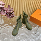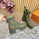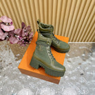 LV Laureate Platform Desert Boot 70mm Khaki Green Denim Fabric