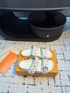 LV LV x TM Bom Dia Flat Comfort Mule White with Monogram Multicolore Leather 218912