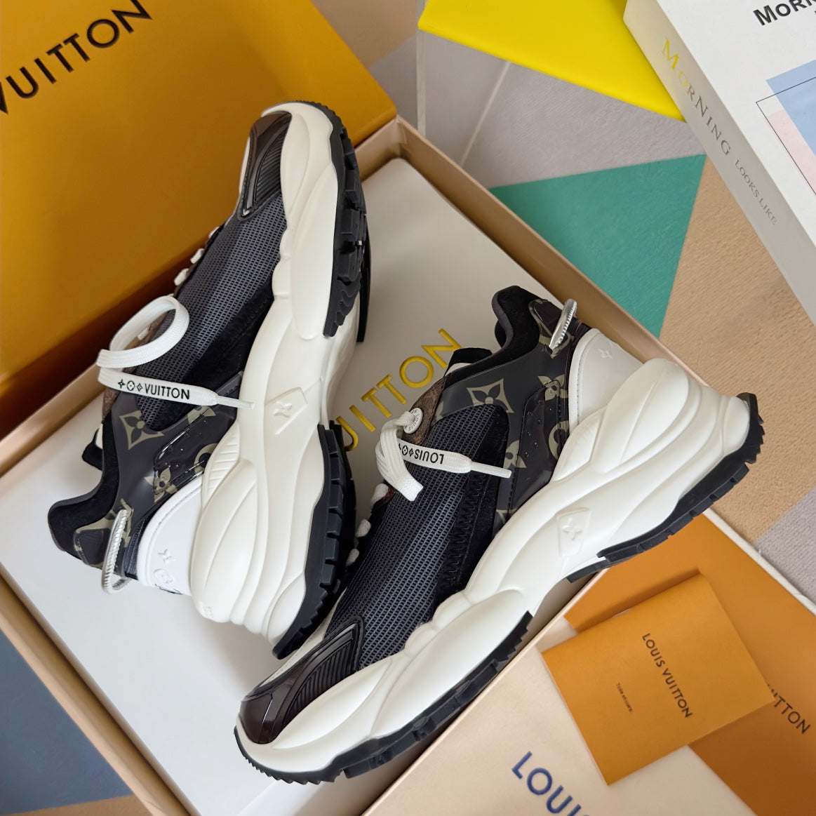 LV Run 55 Sneaker 55mm Black Mix Blue Charcoal Monogram Polyester Mesh Fabric