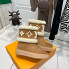 LV Snowdrop Flat Ankle Boot Brown Monogram White Suede