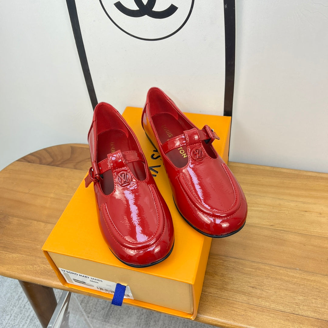 LV Soho Flat Mary Jane Red Calfskin