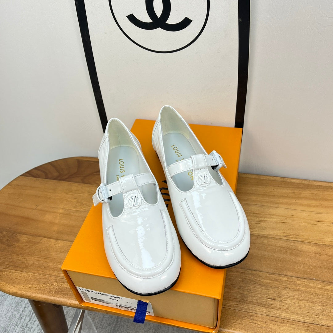 LV Soho Flat Mary Jane White Calfskin