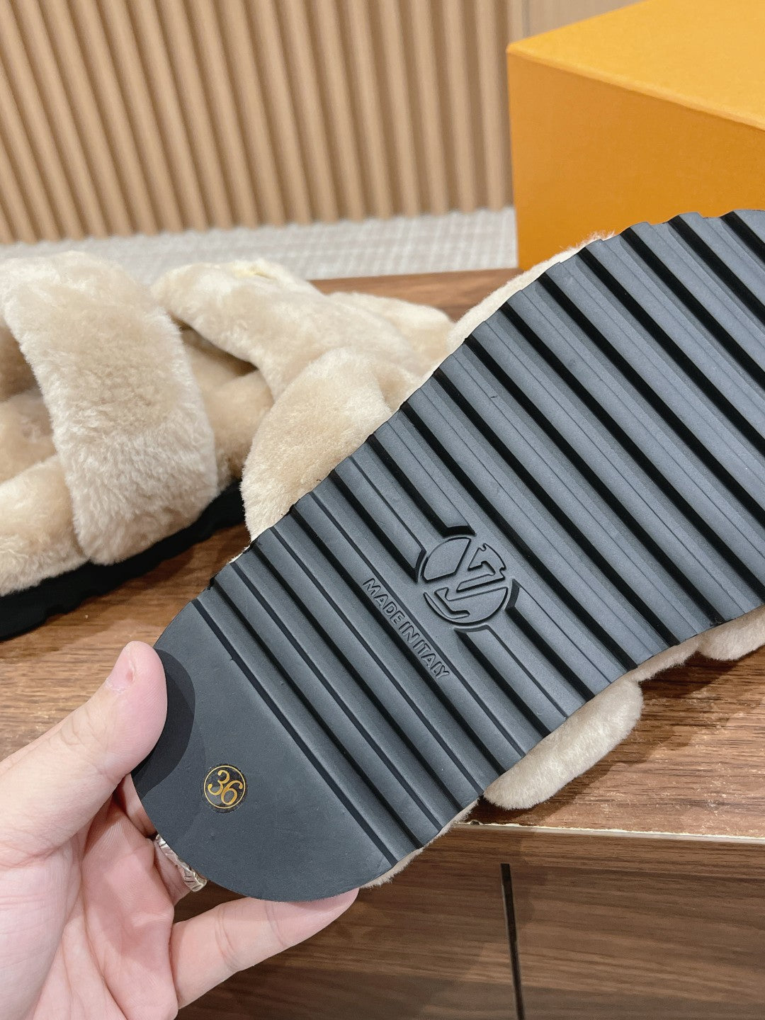 LV Sunset Flat Comfort Mule Milky Brown Wool