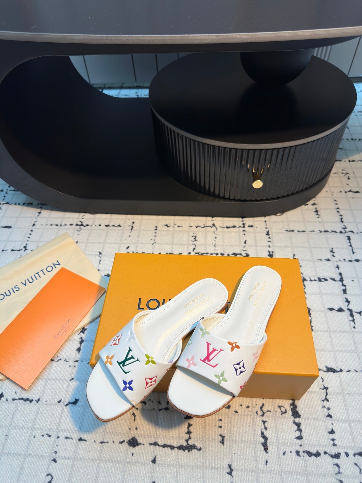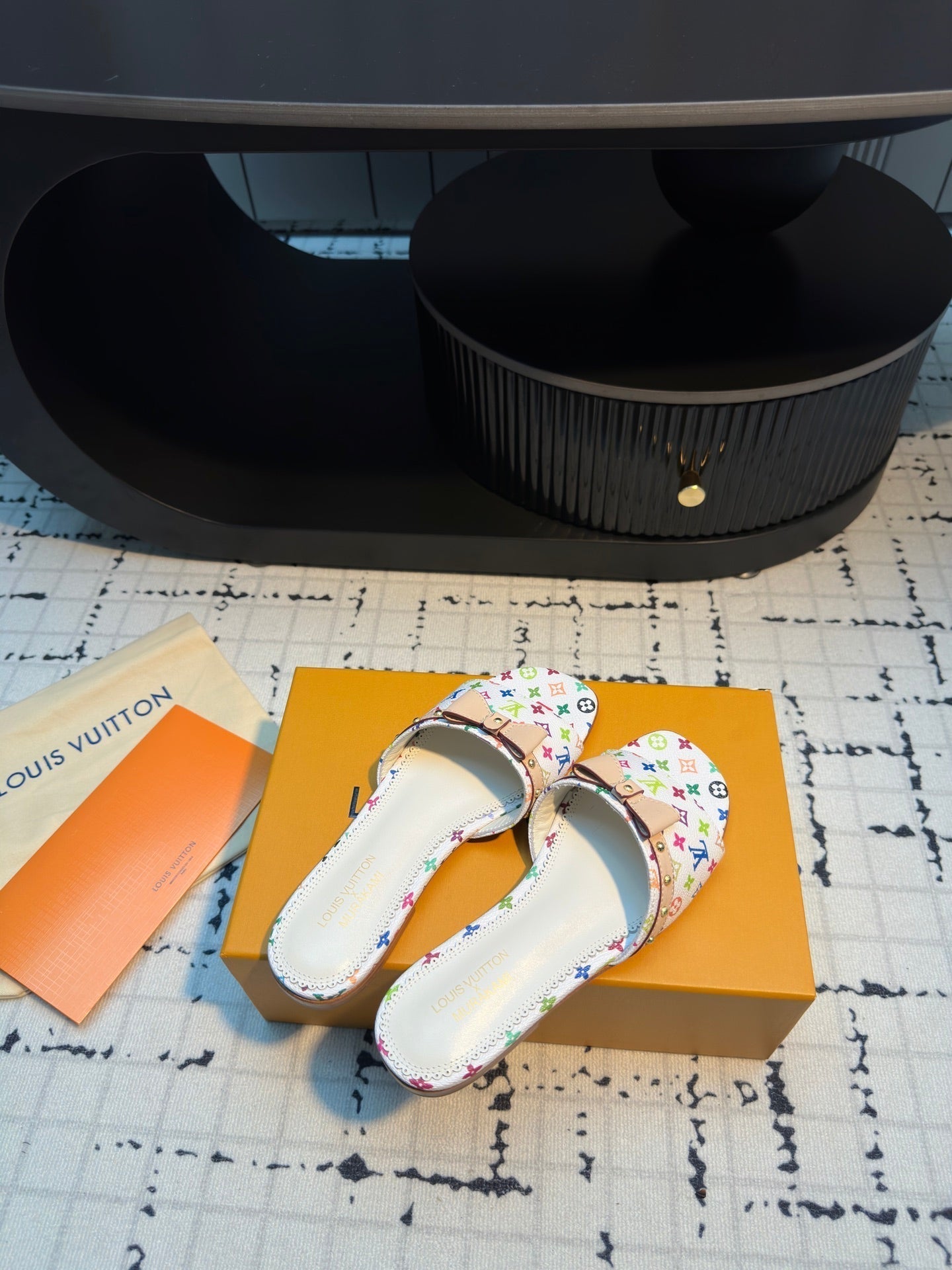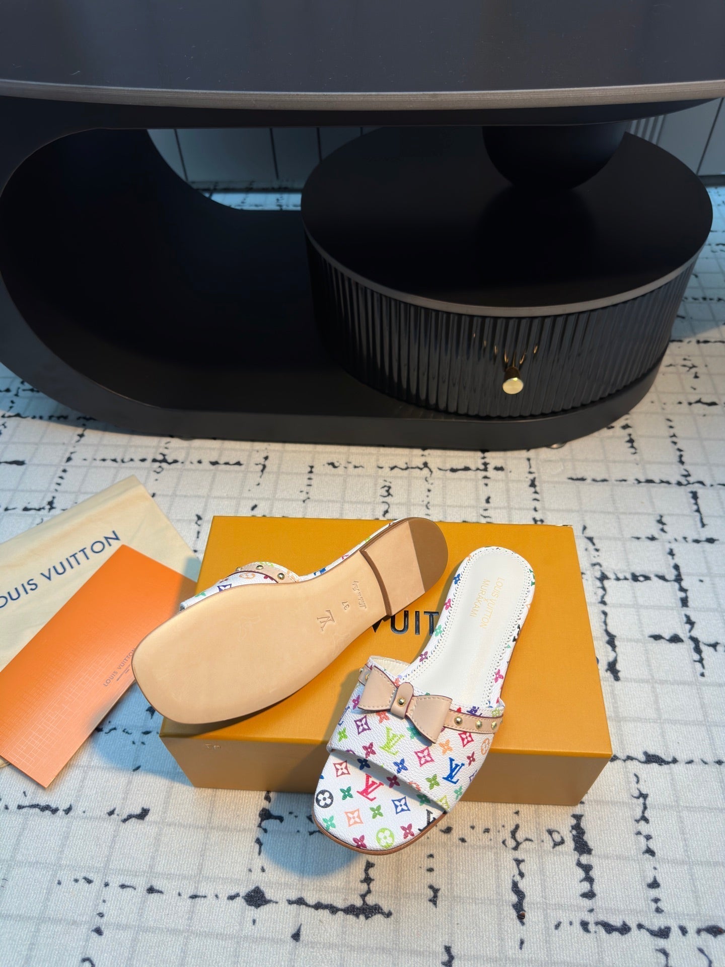 LV LV x TM Bom Dia Flat Comfort Mule White with Monogram Multicolore Leather 218912