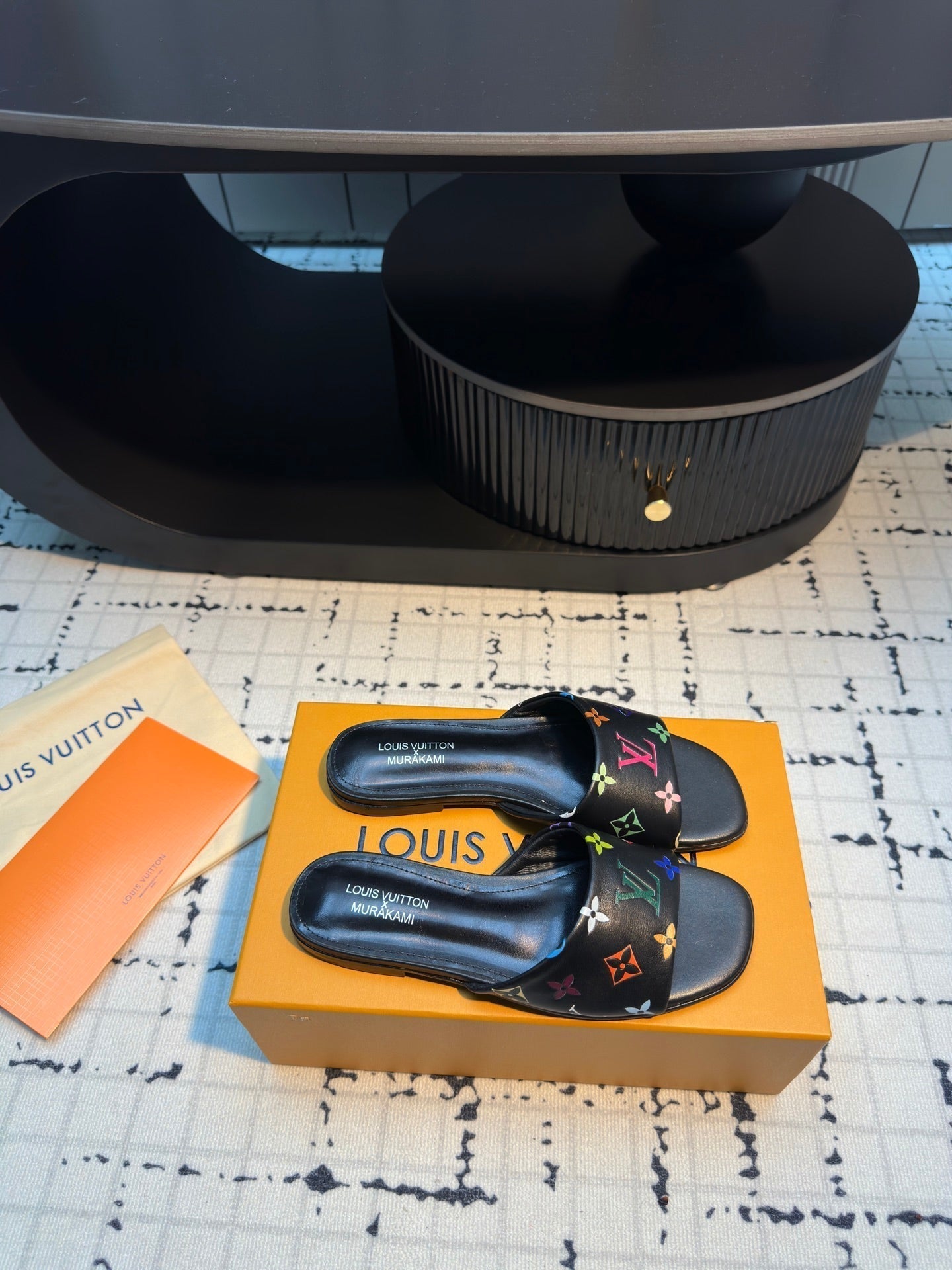 LV LV x TM Bom Dia Flat Comfort Mule Black with Monogram Multicolore Leather 218911