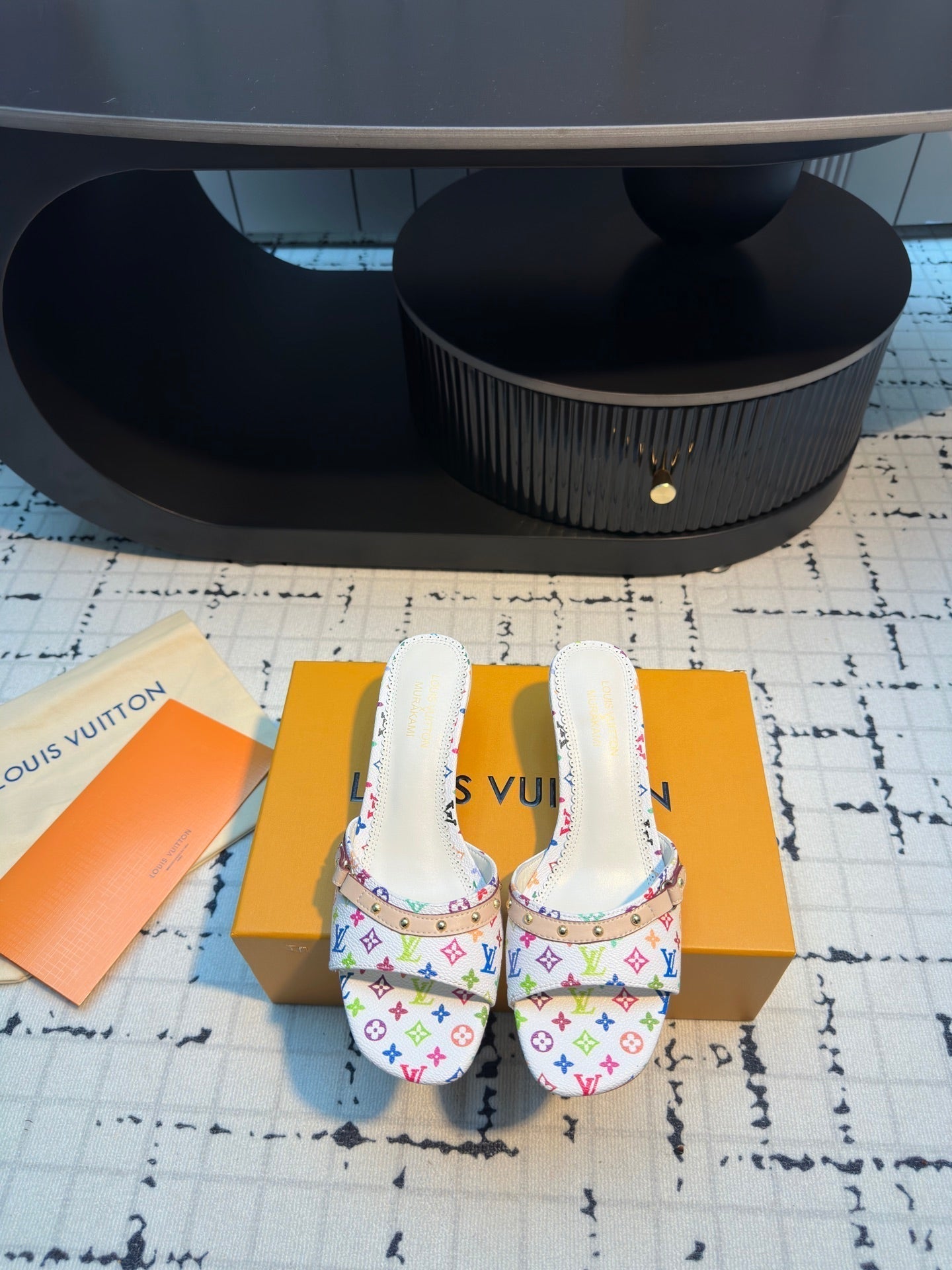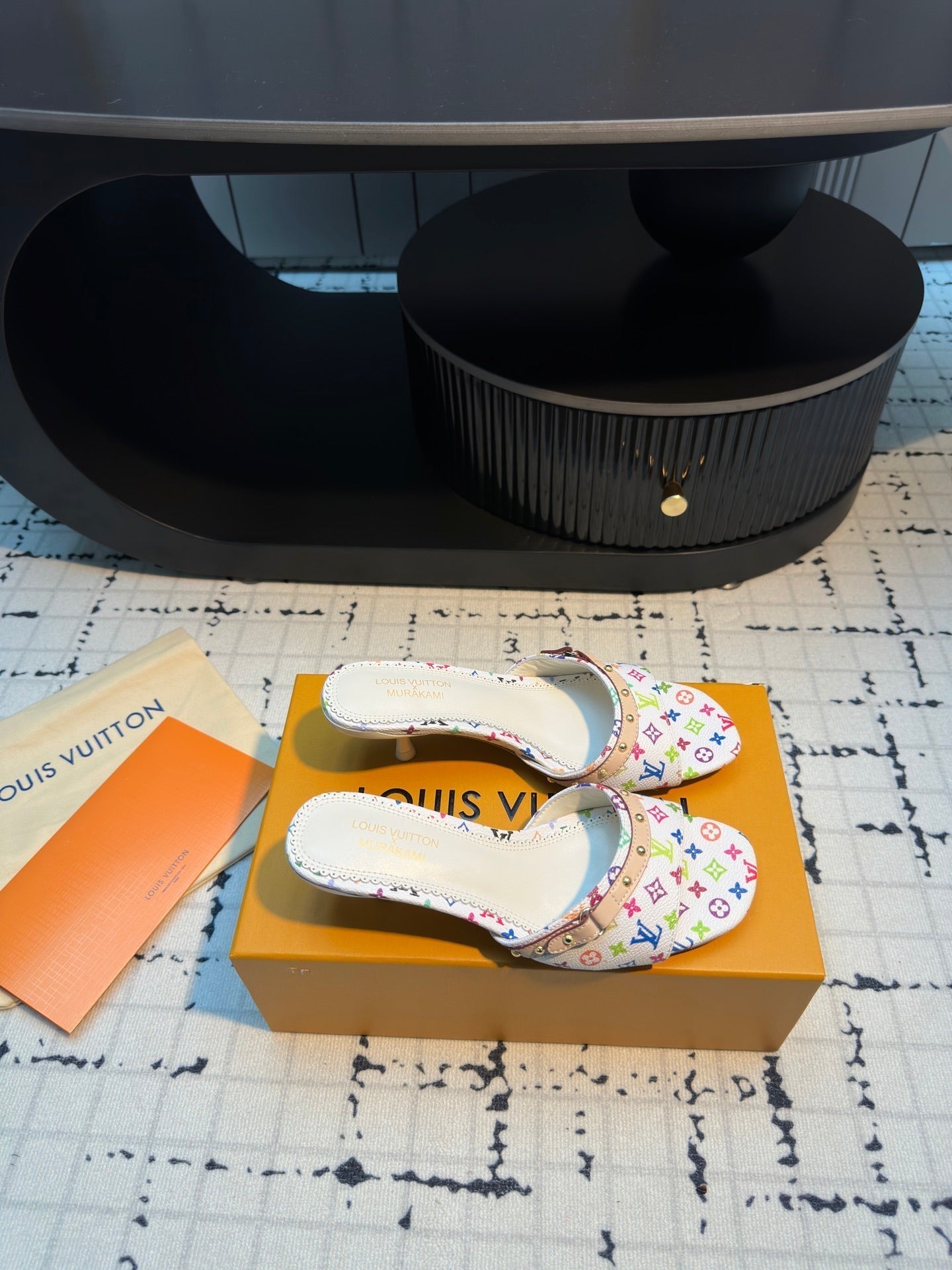 LV Mule 6AM LV x TM 95mm White with Monogram Multicolore Leather 218905
