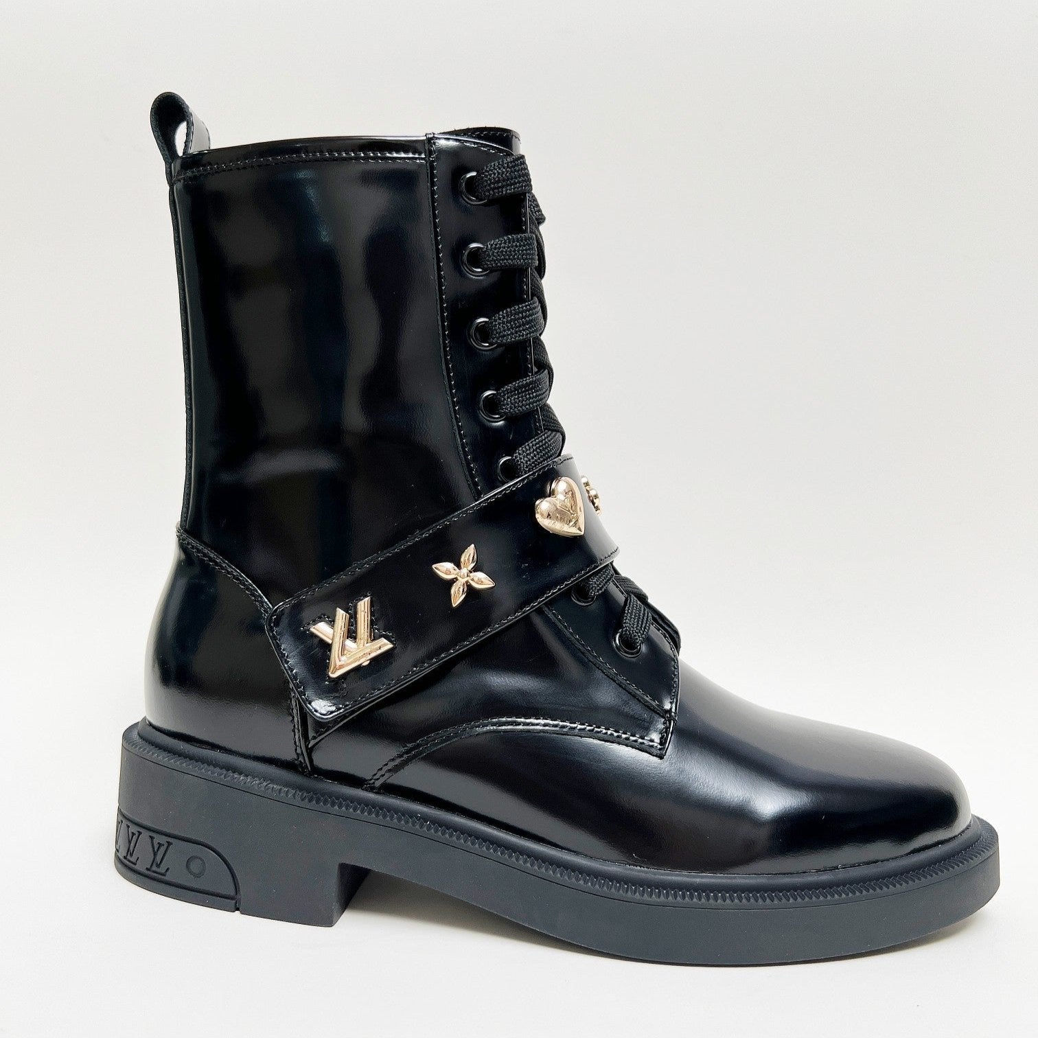 LV Citizen Flat Ranger Boot Glossy Black Calfskin
