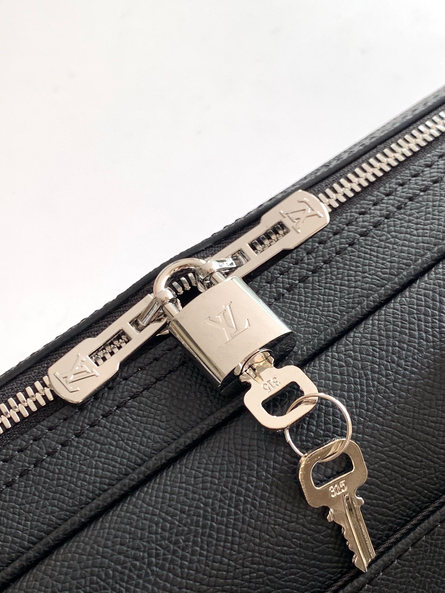 LV Porte-Documents Voyage PM Handbag Black Taiga leather