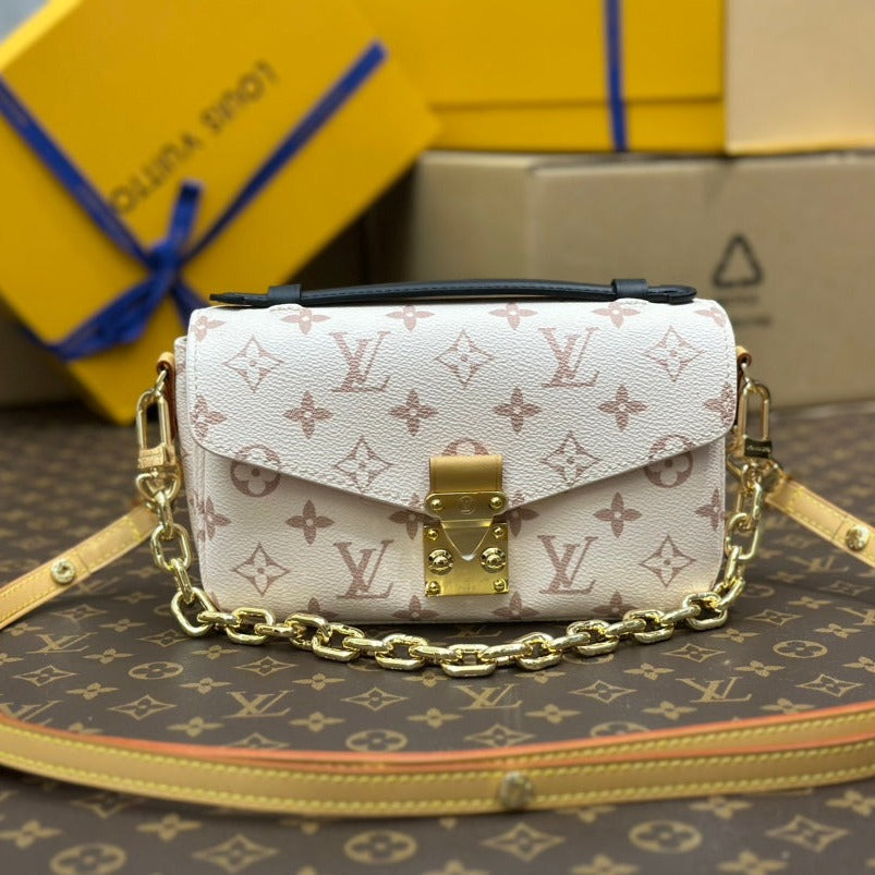 LV ONTHEGO MM 35 CREAM COWHIDE-LEATHER TRIM