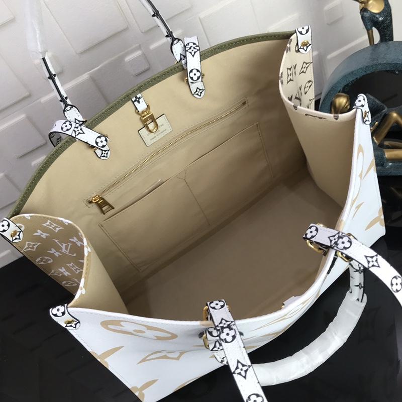 ONTHEGO GM 41 KHAKI WHITE BEIGE MONOGRAM GIANT COATED CANVAS