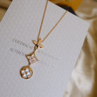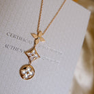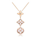 COLOR BLOSSOM LARIAT NECKLACE PINK GOLD WHITE MOTHER PEARL AND DIAMOND