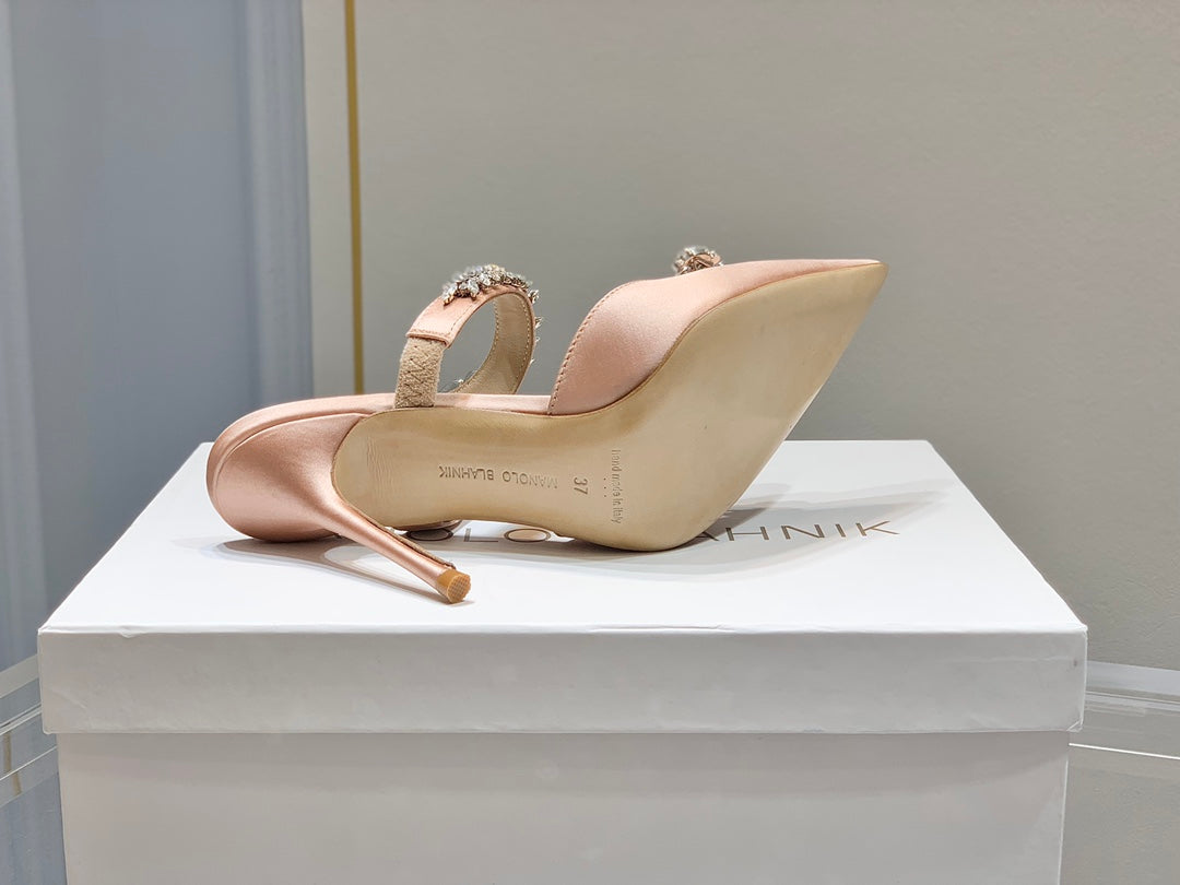 Manolo Wheat Ear Rhinestone High Heels Pumps Pink Nude Silk Fabric 327451