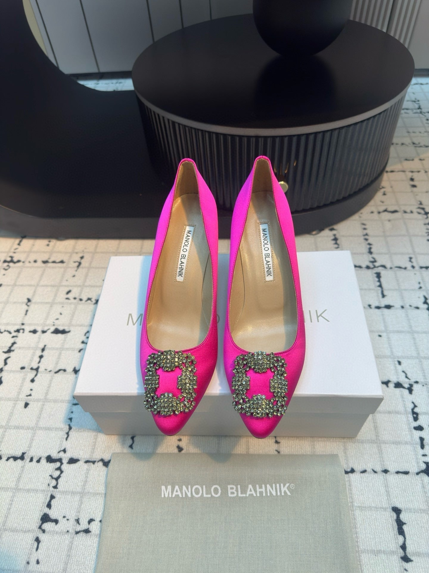 Manolo Buckle Mules 7cm Dark Pink Silk 208015