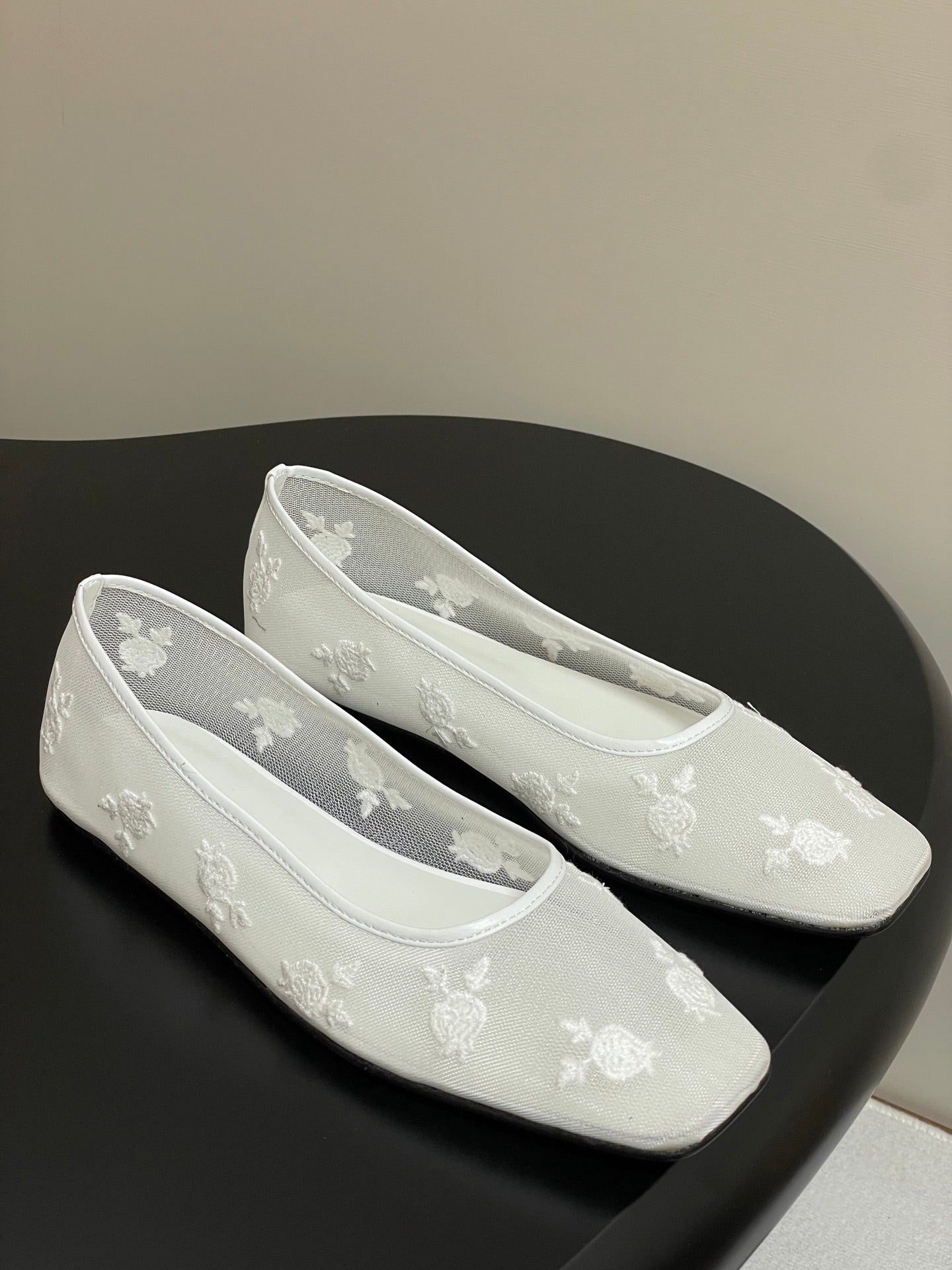 Manolo 25 Ballet Flats White Mesh Fabric 319741