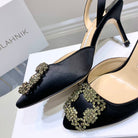 Manolo Buckle Slingback 7cm Black Silk 208027