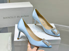 Manolo Diamond Buckle Pumps Baby Blue Silk 327501