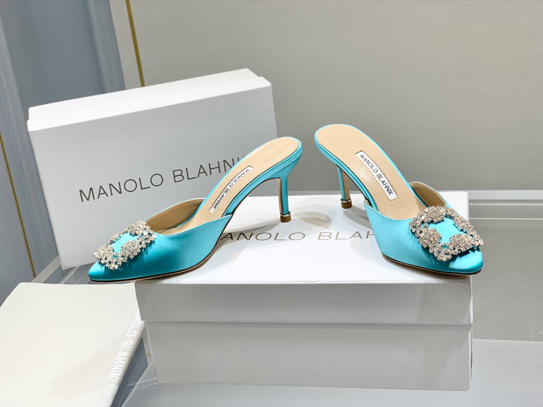 Manolo Buckle Mules 7cm Eletric Blue Silk 208017