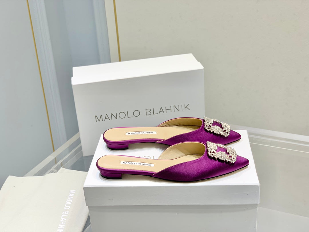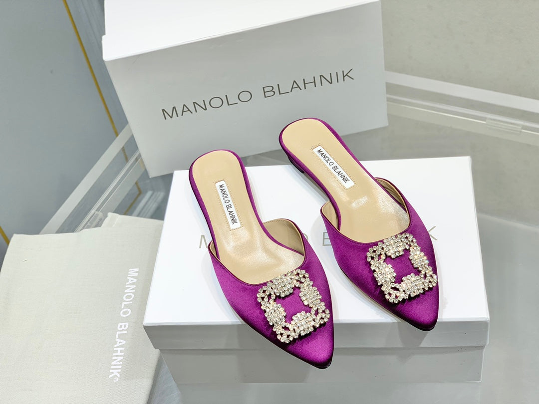 Manolo Flats Mules Diamond Buckle Purple Silk Satin 327487