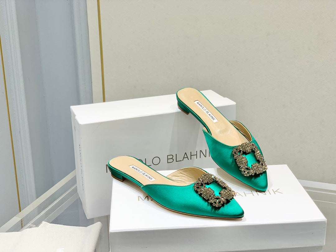 Manolo Buckle Slingback 7cm Green Silk 208029