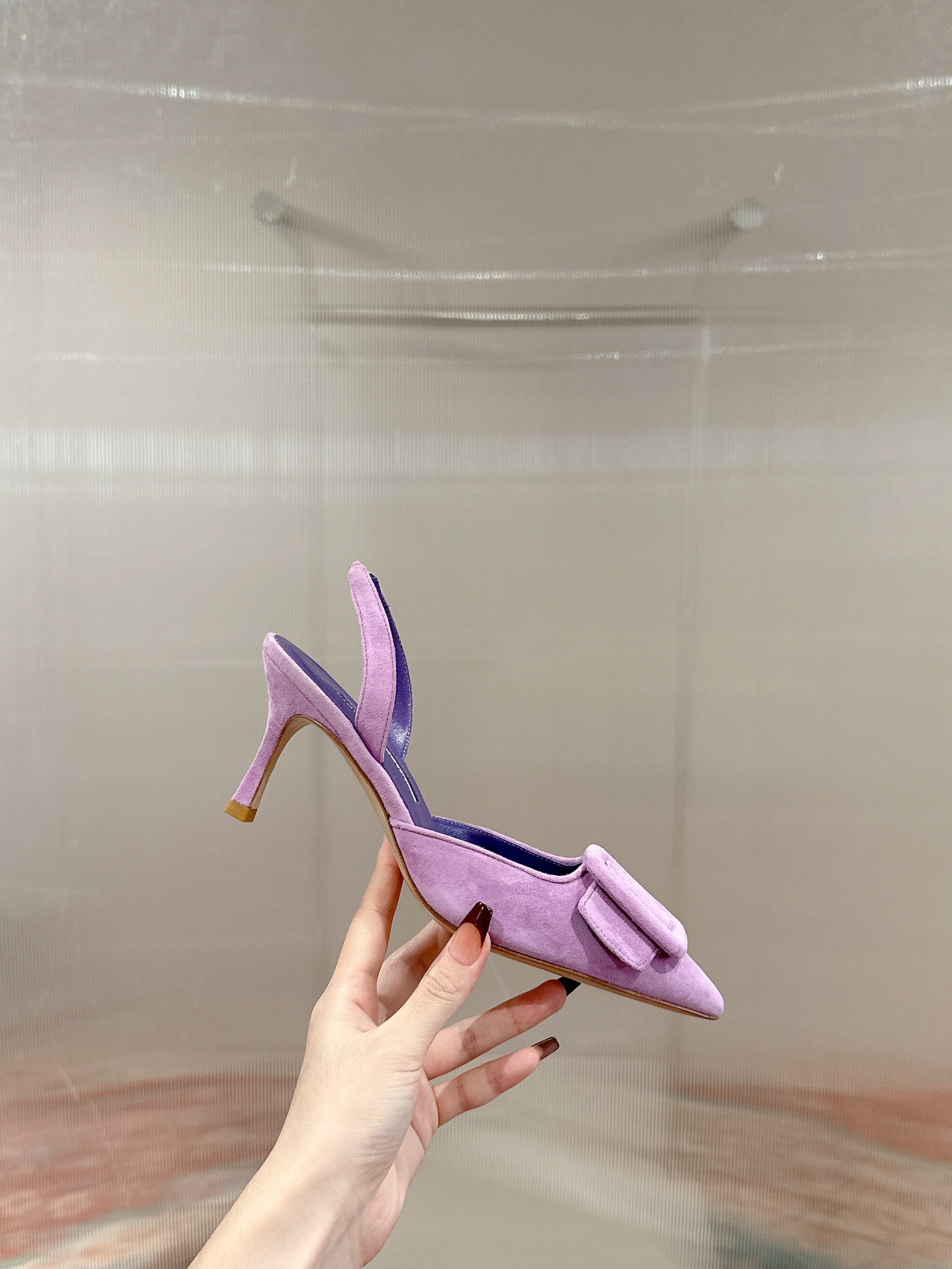 Manolo Mules 7cm Purple Fabric Leather 528012